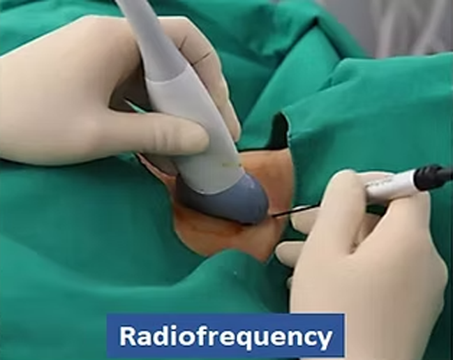 In our patient with a single, large (53x45x47 mm) solid nodule in the istmus, percutaneous radiofrequency ablation was done. The six months control ultrasound showed over 80% volume reduction of the treated thyroid nodule and the neck returned to normal in appearance.