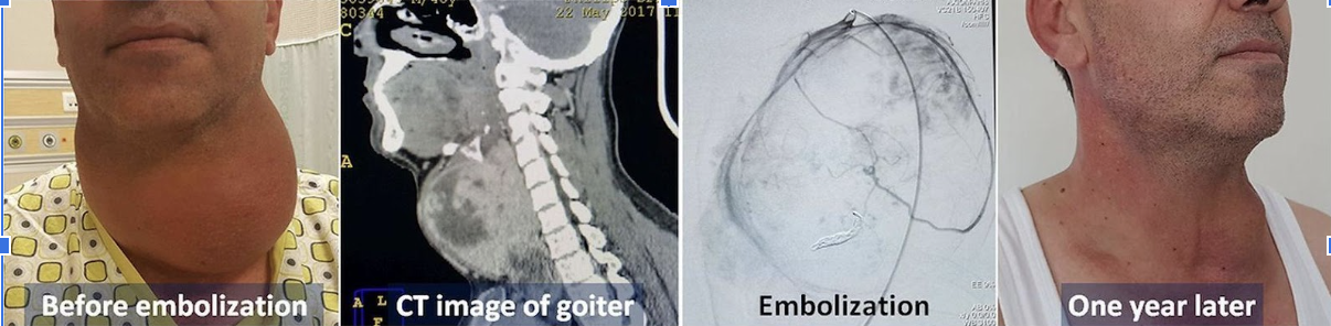 It is an effective treatment. Following embolization, a 70-90% volume reduction of the goiter mass can be achieved. As a result, compressive complaints such as shortness of breath, hoarseness and swallowing difficulty decrease or disappear.